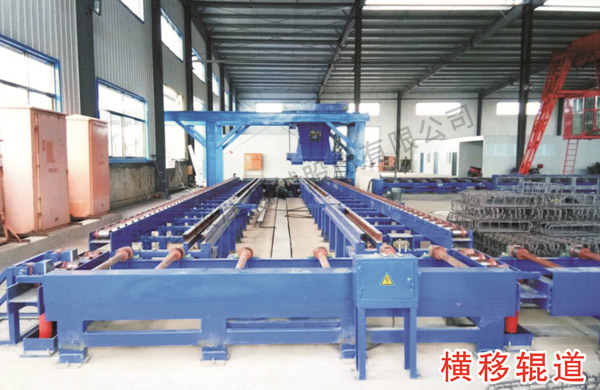 我公司生產(chǎn)的橫移輥道是一種物流輸送設(shè)備,它包括一個(gè)框架,框架的安裝板上安裝有橫移電機(jī),框架的上端可移動(dòng)配合設(shè)置輥道機(jī)主體,輥道機(jī)主體的兩端豎直向下延伸部與傳動(dòng)鏈條兩端相連接,所述傳動(dòng)鏈條經(jīng)由橫移電機(jī)兩側(cè)的傳動(dòng)鏈輪導(dǎo)向后與橫移電機(jī)輸出軸上固定的主動(dòng)鏈輪相嚙合。